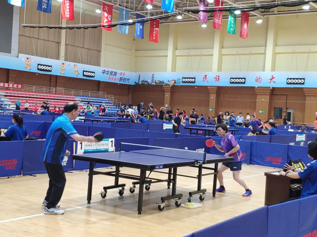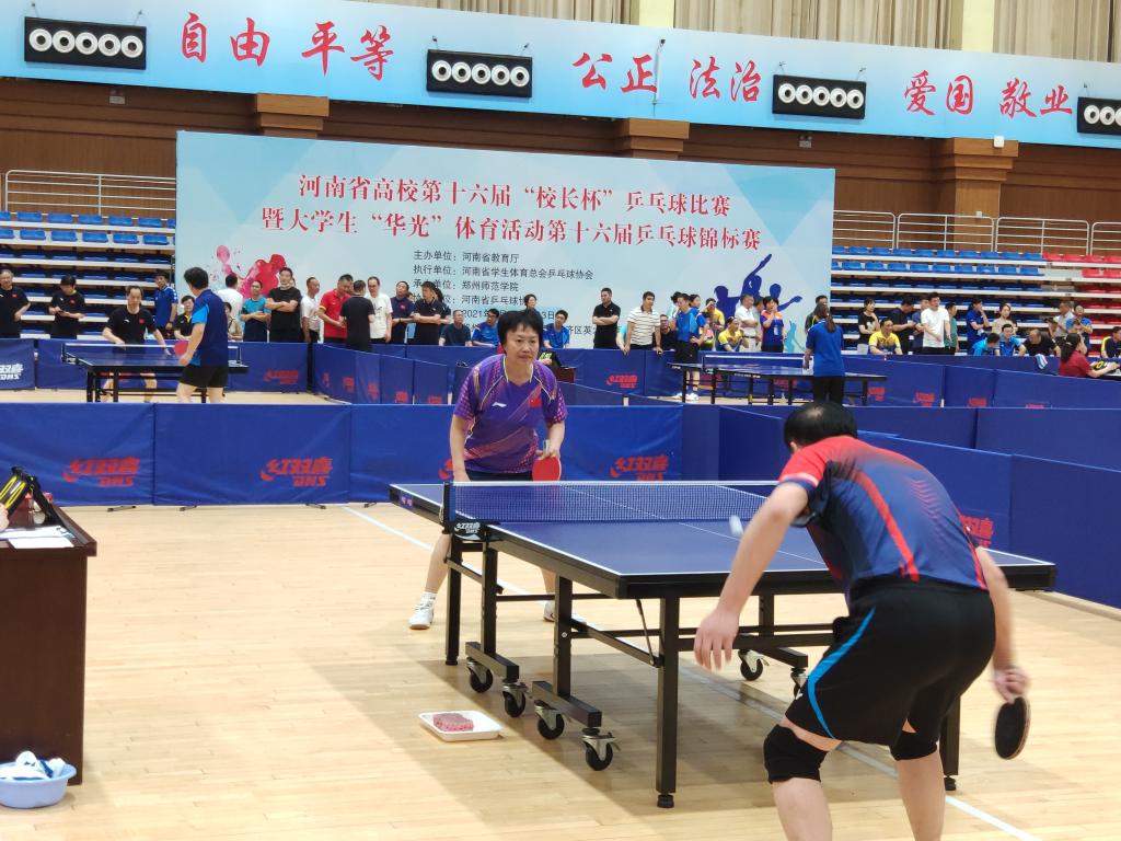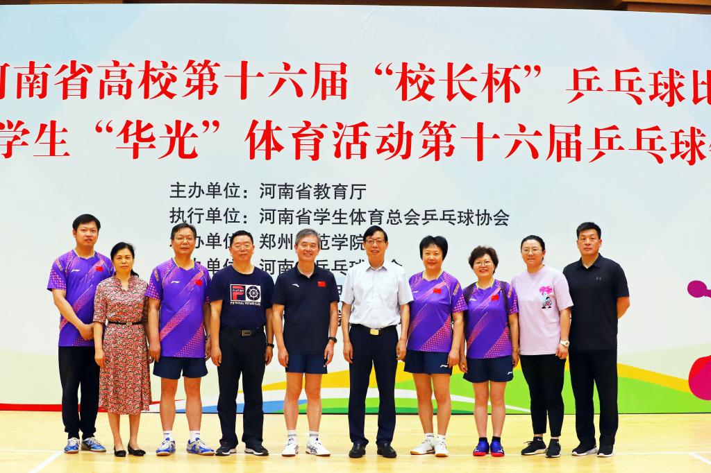 (通讯员 欧阳华澍)6月11至12日,河南省第十六届“校长杯”乒乓球比赛在郑州师范学院举行。参加本届比赛的我校代表队队员由校党委书记张惠贞、校长王召东、党委副书记王靖、纪委书记刘守勇组成,党委副书记、工会主席许朝民为领队,教练员由体育教学部姜晨、李彻担任。