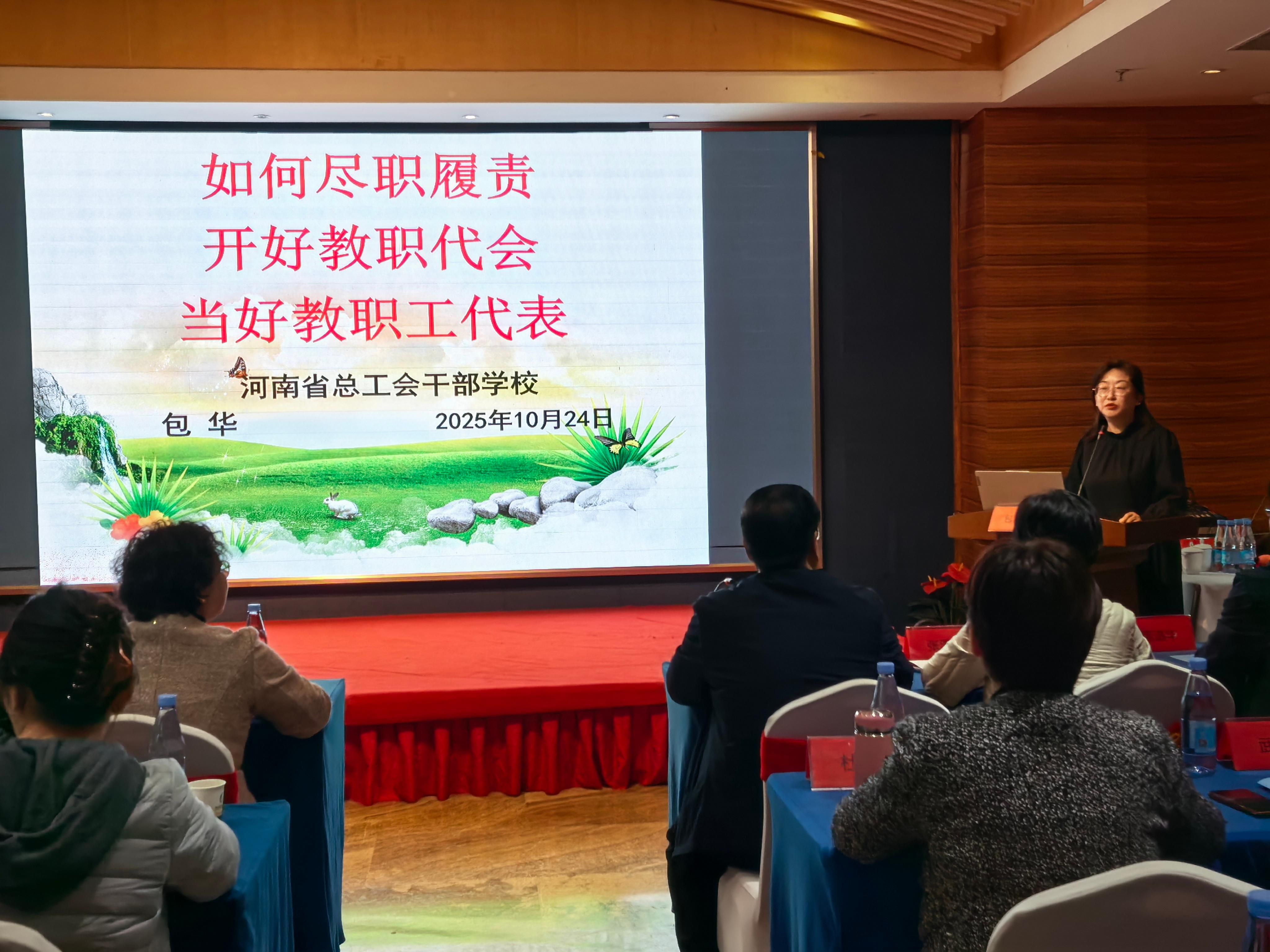 本次培训班为期3天,培训课程紧密围绕“双代会”核心知识与履职实务、新时代高校民主管理与代表责任担当等专题展开,特别邀请河南省总工会干部学校包华、付朝分别作《如何尽职履责开好教职代会 当好教职工代表》《解读<工会基层组织选举工作条例><基层工会会员代表大会条例>》专题报告,帮助代表们清晰掌握开好“双代会”的流程与当好代表的职责要求。同时,在现场教学中代表们直观感悟了中华文明的厚重底蕴与源远流长,进一步强化文化认同、提升文化自信,坚定理想信念,为后续高效履职奠定坚实基础。
