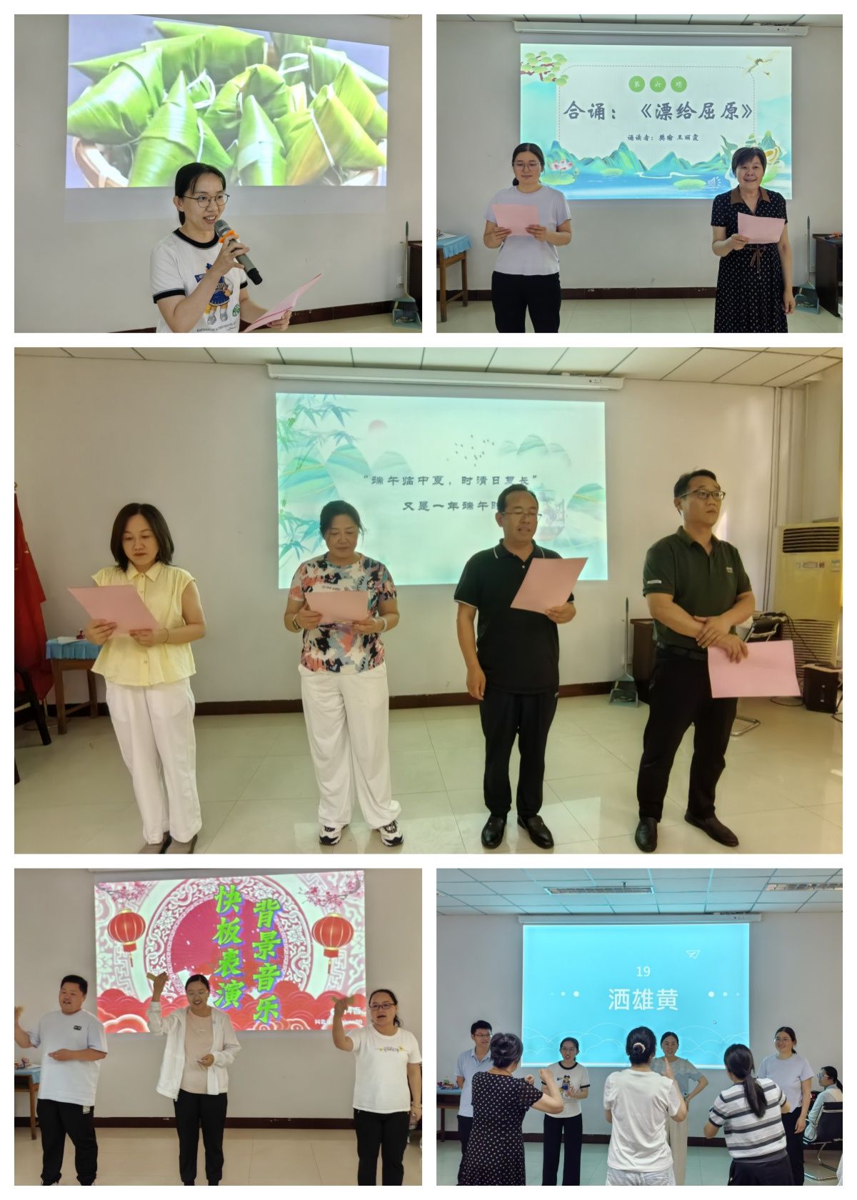 活动上午,教职工分组进行包粽子比赛。折粽叶、填糯米、放馅料、扎绳子,巧手翻飞间欢声笑语不断。分工会将大家亲手包的粽子赠予全体参与者,传递节日温情。同时,“端午知多少”线上知识问答同步开展,教职工扫码参与,内容涵盖端午节历史渊源、屈原传说、挂艾草佩香囊等传统习俗及经典诗词赏析,寓教于乐中重温文化精髓。