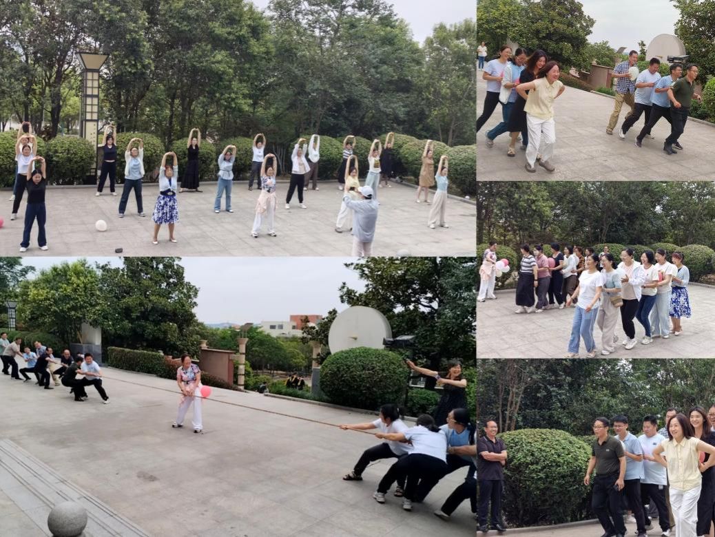 演出结束后,室外活动同样精彩纷呈:欢快的胸背夹球往返跑默契十足,迸发团队协作火花;激昂的拔河比赛如火如荼,彰显拼搏奋进精神;舒缓的八段锦刚柔并济,尽显传统养生魅力。